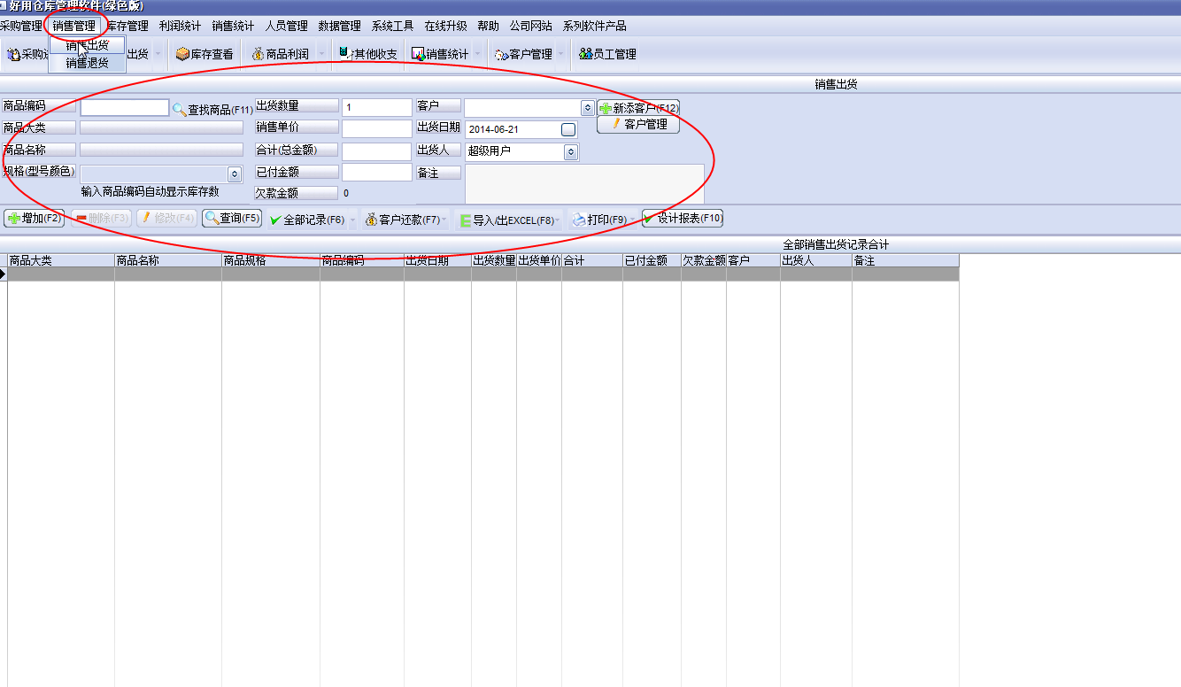 3,如果你要知道销售情况,可以点击【销售管理】,这里小编就是选择的【销售出货】,就会出现下面的情况