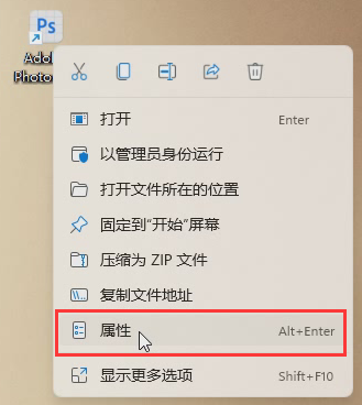 1、桌面的ps图标上右键单击,弹出的对话框中单击属性