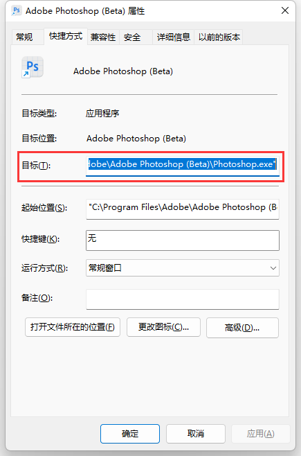 2、在弹出的对话框中,目标即为安装路径。