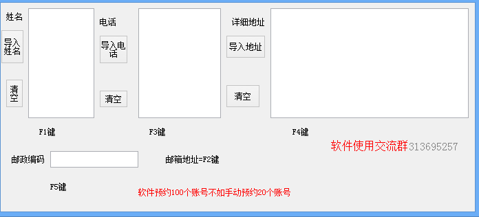 小米手动预约助手是小米购买手机的预约助手,可在小米的预约界面快速输入姓名电话地址等信息。通过本工具就能够直接省去一个个输入个人信息浪费的时间了,可以有效的提高抢购的效率。