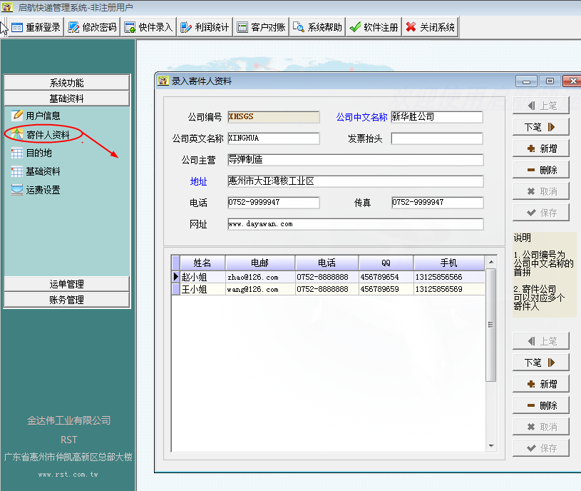 启航快递公司管理系统的使用方法