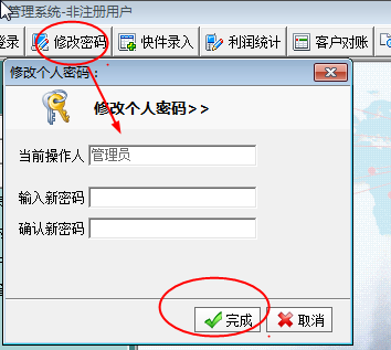 8.现在,讲最上面的使用方法。如果觉得登陆密码太容易被人知道了,可以再【修改密码】选项框里面经行修改,最后就得点击【完成】,这是在有激活码的情况下,没有的不用修改