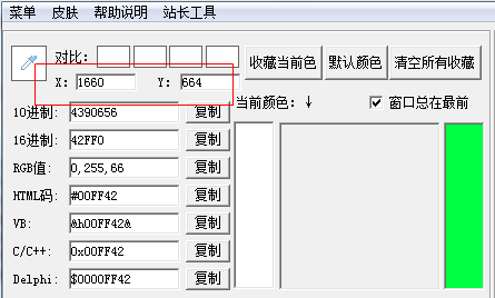 2.软件会自动读取鼠标箭头所在坐标的颜色值