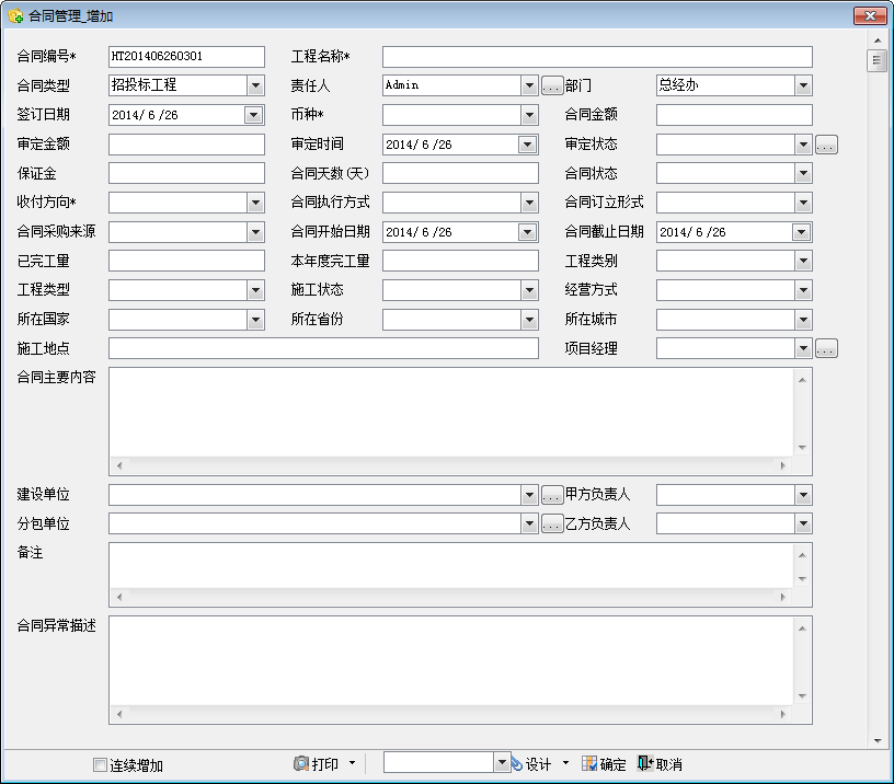 3、建立高效的合同管理制度,软件强大的提醒功能,方便企业及时准确的进行合同的收付、变更,确保工程项目的顺利实施。