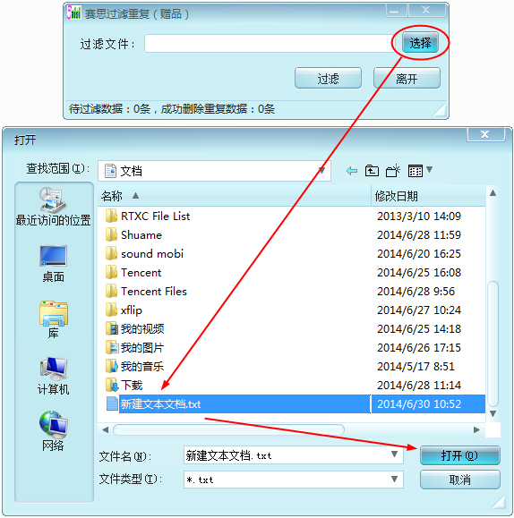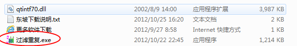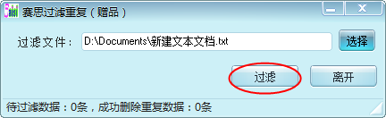 1、下载并解压软件,双击【过滤重复.exe】启动赛思过滤重复工具