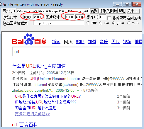 抓取的图片保存是自动保存在程序存放目录的,如果感觉不方便查看,何不直接将 URL2BMP 程序放在桌面上(而不是快捷方式),这样抓取的图片就会自动保存在桌面,如果不换到桌面,这回保存到URL2BMP的文件夹里面。