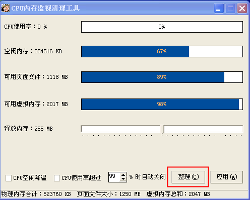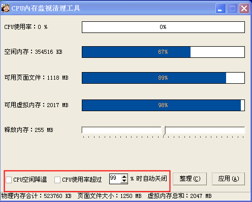 这是一个对CPU使用率,空闲内存,可用页面文件,可用虚拟内存进行监视的小工具。