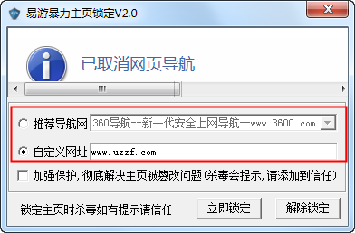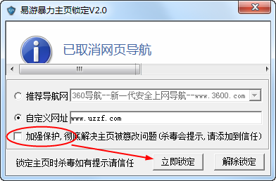 每次更换保护的网址都要先解除锁定,再执行锁定才可以,加强保护模式 需要重启电脑才能重新加锁。