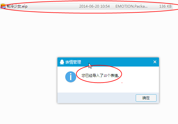 2、这时登录自己的QQ,然后在双击表情包,这是有下面这个提示。才能代表你导入了QQ里面