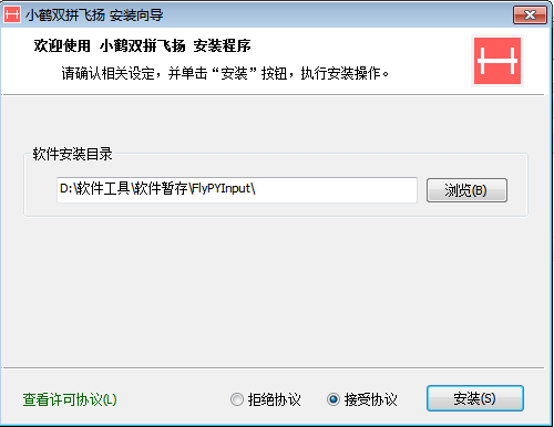 2、解压缩小鹤双拼飞扬输入法软件压缩包,点击exe文件安装。