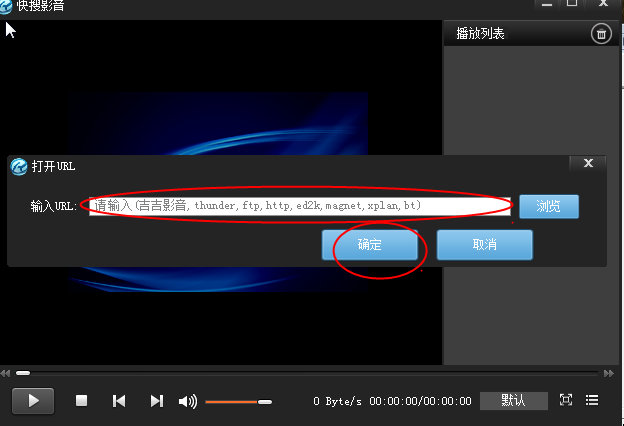 4、设置之后在右击鼠标,点击【打开】,然后在打开的对话框中输入你要的内容资源,点击【确定】,可以就观看了。