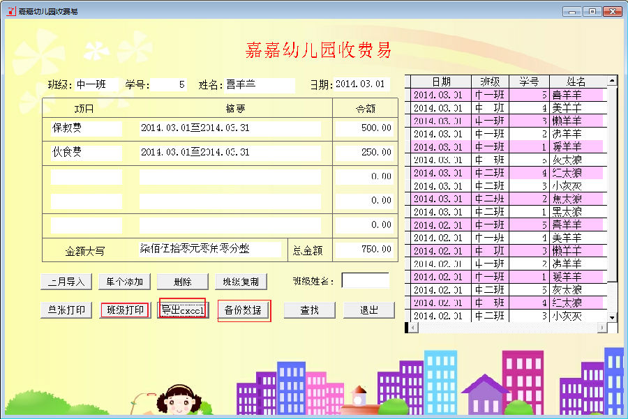 嘉嘉幼儿园收费软件是一款幼儿园的收费工具,解决了人工收费的麻烦,让收费程序简单化,智能化。该软件功能强大,能够导出相应的文档,以供查阅。