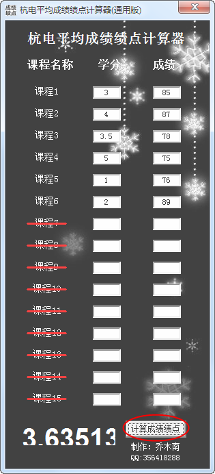 打开五邑大学绩点计算器,输入每一门课程的学分和所得成绩,点击【计算成绩绩点】就可以算出你的平均学分绩点了。