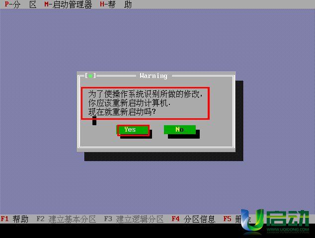 在确认修改无误的情况下,为了使操作系统能够识别到所有的修改,现在只需要点击“Yes”按钮即可重启计算机了;如下图所示:
