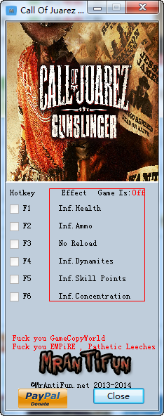 狂野西部枪手是由著名游戏公司育碧出品的一款第一人称射击游戏,为了帮助大家更好的体验游戏内容,小编给大家介绍一款该游戏的辅助修改工具。本修改器支持各种资源无限使用,非常适合那些新手玩家,需要的赶紧下载试试吧。