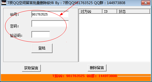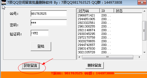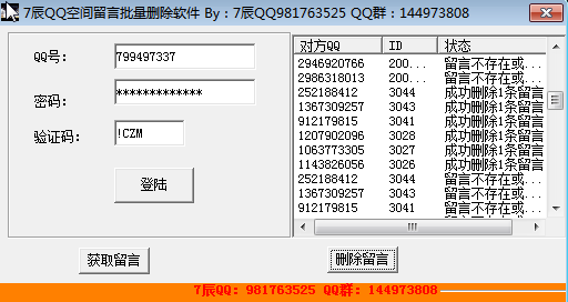 7辰QQ空间留言批量删除软件这是一款功能非常强大的软件,能够一次性的删除QQ上面的留言,操作还非常简单。你还在为不想看到某个人的留言而在一个个的删吗?你还犹豫什么,这款软件适合你!