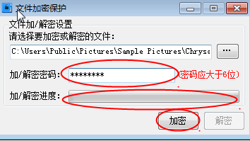 2、这时就会加载文件成功,然后在输入加密密码,然后在点击【加密】,这样这个文件就加密了