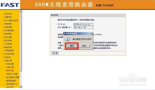 点击确定之后会弹出下面的对话框,我们点击确定即可进行升级后,升级过程中会断开网络一段时间,当升级完成后设置下账号密码,即可重新连接网络了;