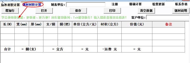 2、如果选择【锯材材积计算】,输入自己的数据,来进行锯材的计算