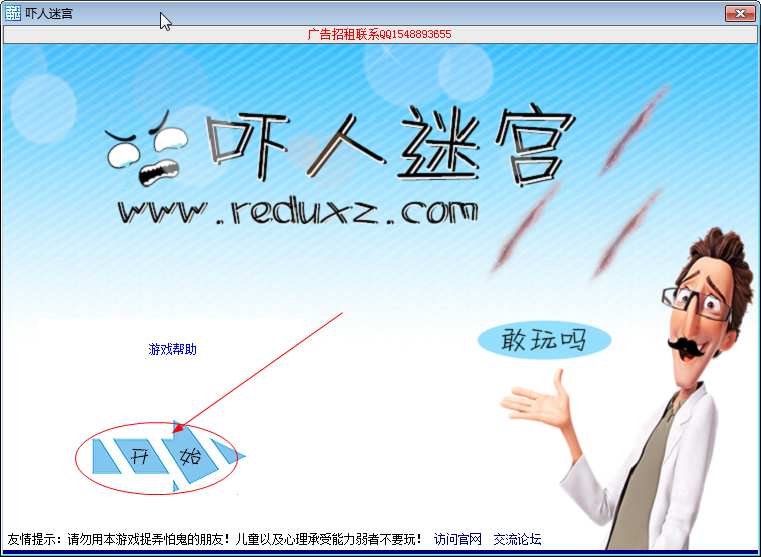 吓人迷宫小游戏是一个非常恶搞的游戏。主人公是个“小点”,不能碰到左右的墙壁,到达红色区域就是胜利,但是,在其中会出现一只“鬼”,心理承受能力小的人,勿玩!
