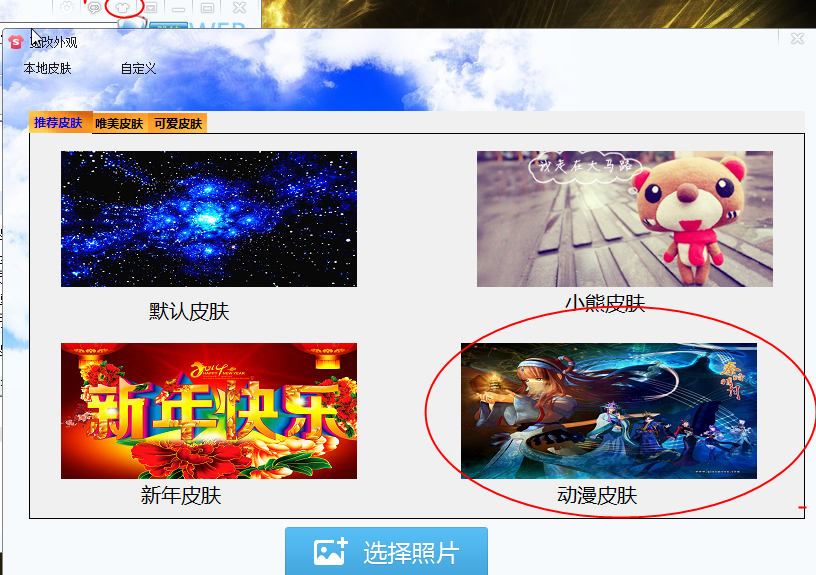 2、这时可以选择“皮肤”,来选择你喜欢的一款