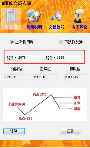 3、登录软件后,根据你要计算的内容,输入高点和低点的价格,然后点击【计算】就可以得到结果