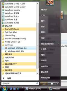 5、 如果要重新安装客户端,请先在所有程序中用Uninstall WinPcap卸载WinPcap,也可尝试在带网络的安全模式下操作。