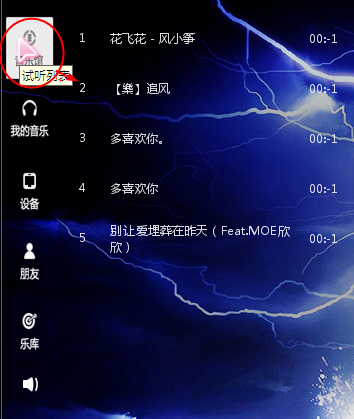 1、可以选择“试听列表”,就会随机给你几首好听的音乐