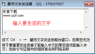勇芳文字发送器,可以将文字发送到指定窗口,主要用于重复发送文字,或者向不能输入中文的某些游戏中发送中文,如命令与征服中的指挥官名和网络名称等。