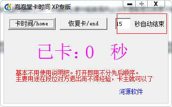 泡泡堂卡时间辅助是一款适用于网游泡泡堂的辅助工具,本辅助主要功能就是防止对手提前退出而得不到经验,通过使用本辅助你就不用担心挂机,没经验升不到级了。