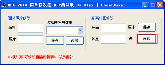 这是一个对NBA 2K14的球员修改的工具,主要对面补和身高体重进行修改。