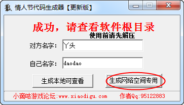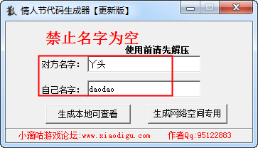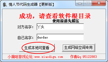 情人节代码生成器是一个表白网页一键生成器,软件是傻瓜化的操作,无需有任何编程知识,使用这个软件即可一键生成表白网页。生成的网页文件在软件目录下找到index.html 文件,支持上传到免费空间,把网址发给TA,对方能不能接受你的表白,就看你们之间的缘分了!