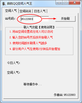 1、刷空间人气:输入你的QQ号然后点击【开始刷】刷空间人气