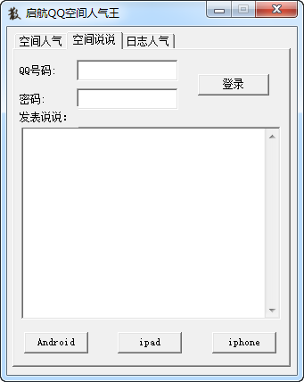 2、发表空间说说:登录你的QQ,输入要发表的说说内容,点击下面的Android或iPad或iPhone进行发表