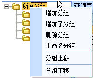 4、在客户分组中,通过右键快捷菜单可以增加,删除,重命名分组,对分组进行上移和下移。