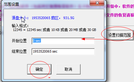 1、进入界面之后选择“设置扫描范围”,在弹出来的对话框中选择位置,然后点击【确定】