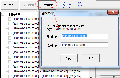 4、之后扫描完成会是下面的界面,然后在选择【查找数据】,这时你在弹出的对话框中输入你要的时间段的文件,点击【确定】