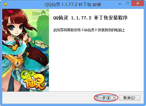2、点击【下一步】安装QQ仙灵补丁包,会自动选择QQ仙灵的游戏安装目录进行升级