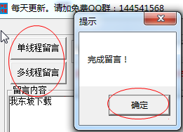 3、然后在进行选择是多线程或者单线程留言,看到完成留言这个提示窗口,就代表留言完成。