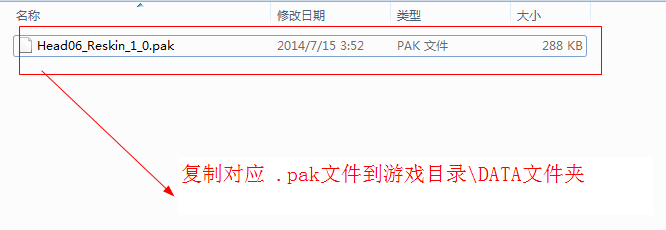 2.复制对应 .pak文件到游戏目录\DATA文件夹