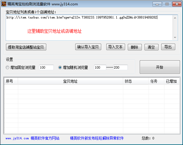 精英淘宝拍拍刷浏览量软件是一个免费的淘宝商品刷浏览量的辅助,专门为淘宝和拍拍店铺设计,可以单独刷一个宝贝的浏览量,也可以批量刷店铺中所有宝贝的浏览量,只要输入店铺网址便可一键提取所有宝贝,使用非常方便。