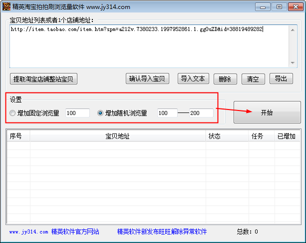 3、点击【开始】按钮开刷淘宝宝贝浏览量