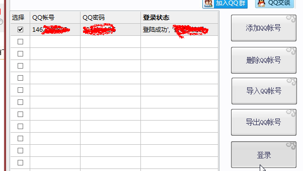 8、单量或批量添加、删除目标QQ帐号可置导入导出到当前软件使用路径。