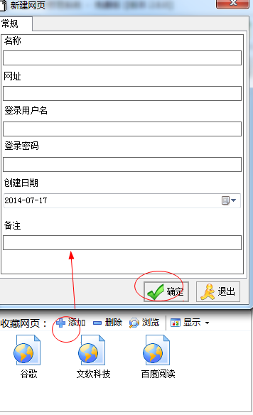2、可以再这个界面点击【添加】,就会弹出一个新建网页的对话框,输入之后再点击【确定】