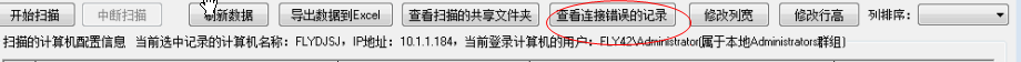 4、点击“查看链接错误的记录”按钮,就可以看到扫描过程中不能连接的计算机信息
