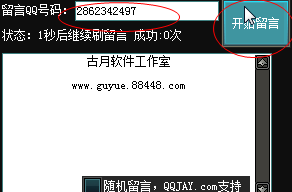 3、随机留言点击后,会随机从QQJAY.com获取留言进行刷取,此功能可自定义。