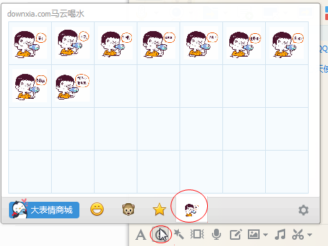 4、进入qq,在聊天对对框中,点击“选择表情”,就会出现关于马云的这个表情包