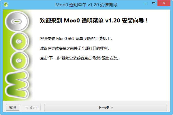1、下载并安装Moo0透明菜单,安装完成后启动程序