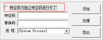 1.首选勾选【特征码为独立特征码进行补丁】