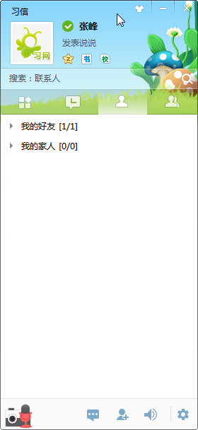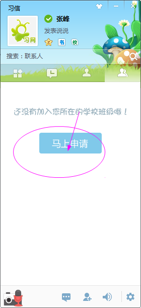 添加好友:习信支持查找习信号(贴心小提示:点击习信界面的添加按钮还不能搜索群,群并不等同于班级,进入PC端界面上方的习信空间—快速添加—>搜号码然后输入想搜索的习信号,然后点击查找即可);